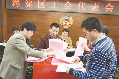北京市工会代表选举工作圆满完成。差额选举产生海淀区出席市总十三大会议的代表30名,并完成了市总十三届委员会3名委员候选人和经审委员会1名委员候选人的推选工作。代表们向大会提交了本人撰写的31份建议案,近半数代表的建议案在《劳动午报》上摘刊。