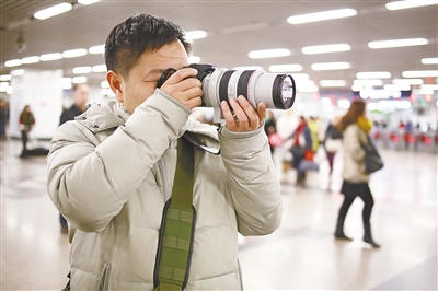 春节期间的北京,与往常相比道路宽敞了不少,熙熙攘攘的城市不再显得那么的拥挤。李明顺就准备背着他的相机开始工作了。“去年的春节,我就来过西站,但是那次的拍摄对象不如这次明确,拍摄地点的范围也很小,今年我准备扩大范围,多找几个范围。”