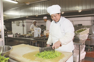 养护集团有的岗位不能离开职工。比如:保安人员、看守运转不停设备的职工。在六里屯有一家垃圾消纳场。这里平时有职工食堂为职工做饭。春节期间,这里的职工食堂暂时停工,为少数值班职工做饭的任务落在了集团职工食堂的身上。杨志强说:“我们有义不容辞的责任。从现在开始,我们就要做好准备。”记者在集团职工食堂里看到,库房里装满了米面油;厨房里,职工正在清洗着蔬菜。滚烫的大锅里则炖着肘子。杨志强说:“我们还准备炖猪蹄。”