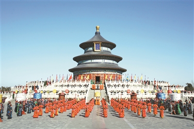大年初一至初五天坛公园将再现清代皇家天坛祭天时的场景,举办第十一届天坛文化周以艺术表演的形式,体现中华礼乐文化内涵,活动深受广大市民、游客喜爱,已成为北京春节文化活动的一道品牌。