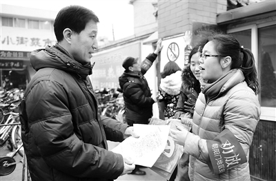 一支由朝阳门街道总工会干部组成的“劝放队”这几天特别忙,队员们分成小组,深入企业单位,走进居民家中,来到繁华路段,提醒职工和市民一定要自觉遵守燃放烟花爆竹的相关规定,特别倡导大家为了北京的空气环境“请您尽量少放或不放”。本报记者 万玉藻 摄影报道