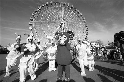 昨天,石景山游乐园举行“洋庙会”盛装游行彩排。羊年新款的金色三阳开泰花车、幽默小丑花车等五辆彩车将带领百余名中外演员热情洋溢的与游客边互动边表演,形成一场在游乐园流动的巡游表演秀。据了解,本届“迎春洋庙会”以“三阳开泰迎新春”为主题,在营造欢乐祥和气氛的同时让游客领略异国风情。