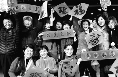 昨天,东城区100多名在职劳动模范汇聚崇文工人文化宫,出席迎新春劳模慰问会,区领导向全区的劳动模范、先进工作者致以新春的祝福。领导们亲手为每一位劳模送上大红的对联和福字,祝大家在羊年身体健康生活愉快。本报记者 边磊 万玉藻 摄影报道
