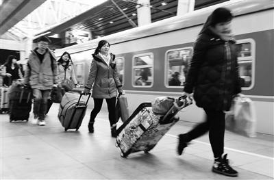 6点40分,乘坐专列的职工们开始陆续进站,每个人的脸上都是喜气洋洋的。“这次春节返乡的车票我们一点都没操心,一切都是工会给操办的。今天我大概3点钟就起床了,大巴车已经在厂区等候了,一直把我们送到车站。你看,工会还给我们送了吃的用的,我现在就希望早点到家……”在往车厢走的间隙,富士康员工小王告诉记者,春节这样乘坐专列回家还是第一次,心里特别高兴,尤其是车上所有的旅客都来自一家企业,大家一起说笑、聊天,旅途一点都不寂寞。