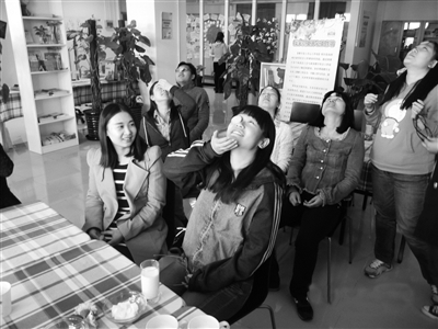 “想想当时的场景就有趣,你想啊,20多人,大家都仰着脸,想方设法往嘴里运饼干,就看谁先吃到!就是这样一个小游戏,让大家乐了一中午!”想起当时的情景,仇雪晨会心一笑。