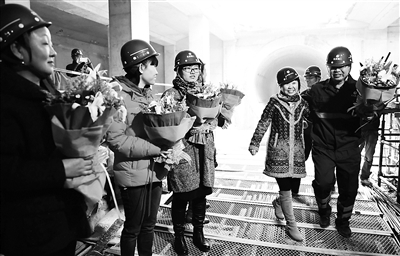 “为保证工期,北京地铁14号线13标项目部春节期间不停工,考虑到职工大年三十还要留守在工地现场,项目部瞒着李玉超等人,特别邀请到在京的6名职工家属到施工现场与爱人们共度情人节,在这个浪漫的日子里提前过年。”北京建工土木公司党委书记邢迎秋看着这一幕,十分欣慰。