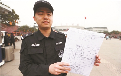 而这群在重庆火车北站执勤的特警兄弟们,也正是这些服务旅客,播撒爱心的团队中的杰出代表。面对每天上千人的问询,他们没有敷衍了事,也没有视而不见,而是把自己的爱心融入了那张小小的手绘地图,变成了那一个个清晰的标注符号,更凝炼成了地图背后那精心提炼出来的防骗“十二不要”。