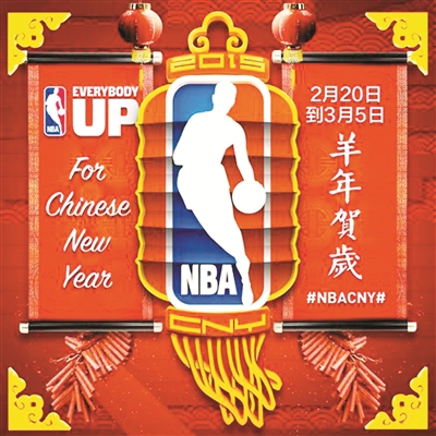 目前正值NBA争夺季后赛席位的关键时期,又恰逢中国的新春佳节,NBA将于2月20日至3月5日推出有史以来最大规模的新春庆祝活动“羊年贺岁”,与中国及世界各地的亿万球迷一起欢度新春佳节。为配合这一活动,金州勇士和休斯敦火箭的球员将在比赛中身着中文球衣,这在NBA历史上尚属首次。猛龙、国王、奇才等球队也将在各自球馆内举行春节庆祝活动,包括为球迷赠送春节主题礼品、进行中国风格的表演等。球迷可以利用这7天假期,感受这些富有中国年味的NBA比赛。