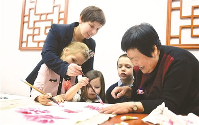 | 居住在麦子店地区的外国小朋友,对传统的中国年画产生浓厚兴趣,春节前,孩子们来到社区活动站和奶奶学习画民俗年画。 |