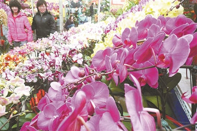 | 春节,买上两盆鲜花回家装饰家居环境,是不少百姓过年前的“必修课”。在玉泉营多家花卉市场,每个摊铺前都有许多客人在询问,选出自己最喜爱的鲜花。 |