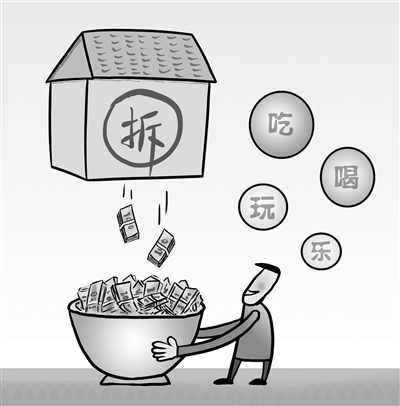前一天还是破旧平房里“脚上带泥”的普通村民,转眼就变成了开豪车、戴粗金链的千万富豪。城市化的快速推进,催生了一个因拆暴富的“拆发户”群体,而随之出现的诸如“吸毒赌博拆二代”“坐吃山空”等现象也引起了来京参加两会的代表委员的关注。(3月3日《北京晨报》)