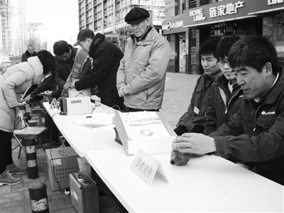 昨天上午九点,金融街二龙路社区外边的马路边上聚集了两支雷锋服务队,一支是二龙路社区马广明便民志愿服务队,一支是自来水集团禹通公司李双军志愿服务队。他们在马路边上摆摊为居民提供志愿服务。