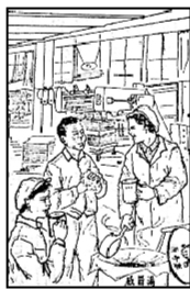 图为当年厂工会宣传组创作绘制的学雷锋漫画。