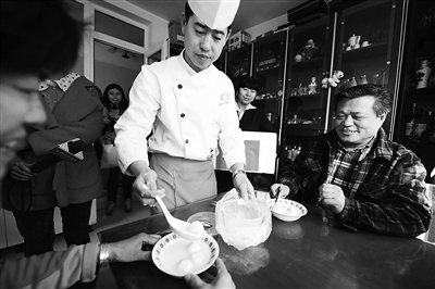 “阿姨,尝尝我煮的汤圆,祝您羊年顺顺利利、甜甜蜜蜜!”昨天,东城区良苑餐厅的首都劳动奖章获得者范彦超师傅和同事把自己包的汤圆送到龙潭北里社区居民家中。这是龙潭街道“家·陪伴”志愿项目的活动之一。当天,良苑餐厅职工在劳模带领下,为空巢老人和失独家庭送去汤圆。本报记者 于佳 摄影报道