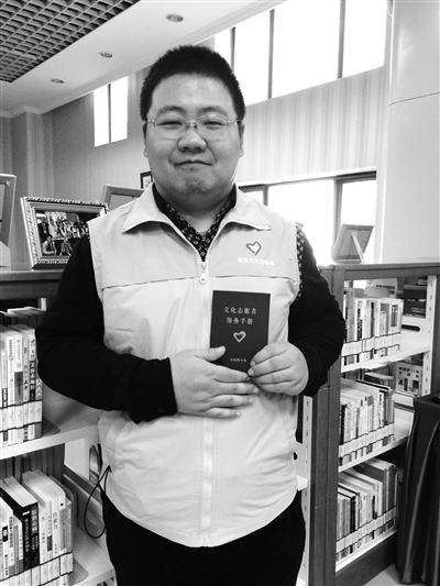 耿辉荣:我一直希望参加这种志愿活动,还在网上寻找过类似组织。之前参加过公司组织的到敬老院还有孤儿院的志愿活动,帮他们打扫卫生、聊聊天、做游戏之类的,今天是第一次到首图来做志愿者。平时我们的工作比较繁忙,圈子也比较小,希望通过志愿活动接触社会,通过自己的能力帮助一些人。希望日后我能有机会多参加这种志愿活动。