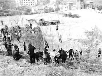那会儿,阳春三月,小溪里冰层融化,有时能听见山涧里叮叮咚咚的春水流,而大地上的泥土也开始解冻松软,正是种树的好时节。通常高年级的同学负责在山野的空旷地上挖好一个个树坑,把小树苗一棵棵栽在里面培上泥土,而低年级的同学则提上小水桶到拉水车那里接水负责给栽上的树苗浇灌。有时山野边有小溪,同学们会直接到那里提水浇树。阳光下,大家干得欢实,有时老师跟我们说些旁白,会说那些树苗和我们一样在阳光雨露下将一天天成长,将来变成栋梁之才,成为防护林抵挡风沙,也会成为这个世界的风景。有许多次放学后,我们也会跑去看我们栽种的那些小树,看着它们一天天长高。多年后,因为一批批学生,一年年地在那里植树,校园的后山已形成了一片小树林,而曾经山间光秃秃的堤坝也因有绿树的环绕多了绿色的诗意。至今我还记得我们栽种过的那些树,有绿油油的松树,有挺拔的杨树,也有婀娜的柳树,它们在家乡的原野上枝繁叶茂,也见证着我们成长的岁月。