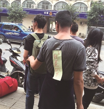 在广西玉林红豆论坛上,有网友上传了一组图片,图片显示在广西玉林汽车总站附近,一名男子行窃时,被路人在背上贴了一张写着“我是扒手”的纸条,但这名男子浑然不知,仍继续行窃。据悉,一名叫“父皇”的网友称自己不仅在大街上给小偷贴标签,还在旁边跟踪拍照,把照片上传到了网络上。“父皇”告诉记者,事发时,他正经过那里,看到这名男子不停地对路边乘客行窃,他就打算用此办法提醒一下周围的人。于是,他找来了一张纸,把“我是扒手”四个字写上去后,趁其不注意,用透明胶把纸条贴在了男子的背部。