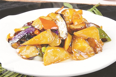 地三鲜,这道家常名菜很多家庭都会做。土豆、茄子和青椒,经过油炸和红烧的工序后味道绵软香浓。三种食材中都含有无机盐——钾,但经过高温油炸其会大量丢失。茄子中富含的维生素P,具有降低血脂的功效,可经过油炸后,茄子会像海绵一样吸收大量的油,几乎完全损失了健康益处。另外,青椒和土豆中本来含有丰富的维生素C,在油炸后也几乎损失殆尽。