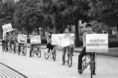 近日,中建二局土木公司南方分公司组织青年志愿者走上街头,以骑行的方式宣传绿色出行的环保理念。