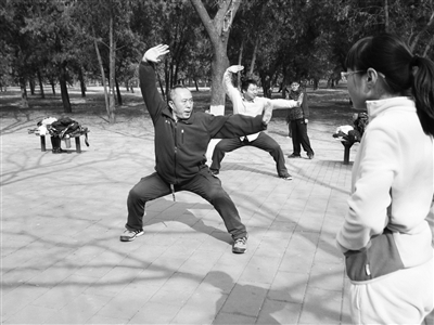 “习惯了,从小学武习惯早起不怕冷,再说年岁大了也睡不着,看着孩子们练功夫也是一件高兴的事情。老师嘛,总不能自己迟到让学生等吧!”李老师已是花甲之年,家住怀柔,来一趟路上就得花费近两个小时,为了及时赶到,早上李老师常常7点之前就出发了。