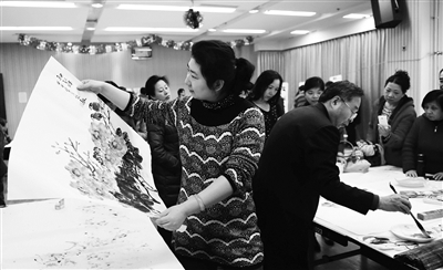 昨天,东城区东花市街道工会、计生办举办了“梦圆邻里,共筑和谐”文化交流活动。广外南里社区的草根艺术家欢聚一堂,挥毫泼墨,通过艺术交流的平台,凝聚民心,营造社区和谐氛围。