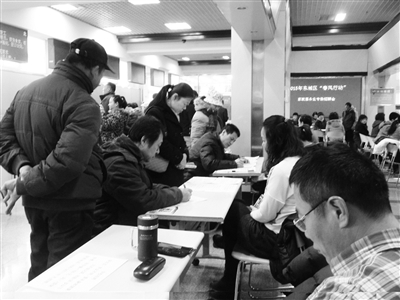 西城区总工会职业介绍所主任季洪福表示,这几年来,春节过后出现短暂的“用工荒”,几乎已经成为了一个定律,其中,服务行业“缺人手”的情况最为严重。面对这种情况,他们采取了“主动出击”的工作方式,不仅积极参与全总的招聘会,自己也将在西城区内组织两场招聘会,同时还在位于马甸的服务中心外设置就业宣传台,为求职者提供失业登记、岗位推荐、职业培训等“一条龙服务”。“正所谓‘人勤春来早’,希望通过我们的努力,企业能缓解‘用工荒’,求职者能找到满意的工作。” 季洪福说。