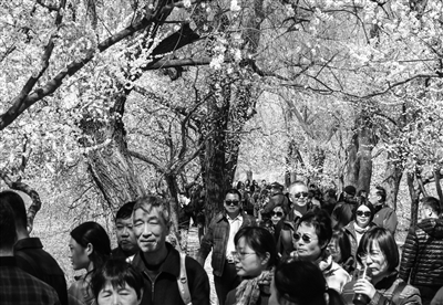 昨天,记者在颐和园见到,众多游人来到颐和园欣赏西堤美景。据公园管理中心负责人介绍,随着气温回升,市属各大公园迎来了赏花、踏青、游玩客流。据不完全统计,上个双休日,全市各大公园的游客量比前几周猛增5至10倍。本周末,玉渊潭公园、北京植物园将迎来今春首个游人高峰。本报记者 邱勇 摄影报道