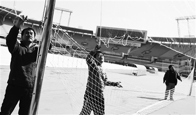 中超联赛进入歇赛期,北京国安进行着调整,而作为北京国安队的主场工体也在进行调整。近日当记者来到工体时看到,草皮被覆盖上了保护膜,场边的人造草皮场已被拆除即将更新,看台前的防护网也将换上新的。球赛停了,工体的工作依然忙碌。