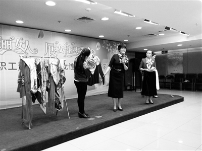 “大家说,做的怎么样?” “不错!”老师把郑燕飞的“作品”向在场女职工们展示后,立刻得到了肯定。“咱们女职工都不白上来,有奖品。”说着,老师把一条漂亮的丝巾送到了郑燕飞面前。“我觉得这样的活动真好,我很喜欢,希望街道工会以后能多多举办,下次,我还来。” 郑燕飞高兴地说。