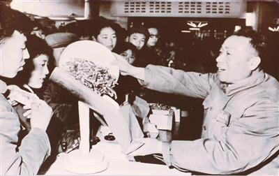 有一次,柜台前同时来了两个孩子。他对高个儿说:“哥哥要让着妹妹,先给妹妹拿。”他根据不同的情况,处理问题也不同。遇到年纪大的顾客,他就说:“咱们先照顾年纪大的。”遇到赶火车或有急事儿的顾客,他就向队前的顾客说:“那位同志要赶火车,麻烦您稍等一下。”遇到有意考验卖糖技术或购糖要求品种多、数量少的情况时,他在准确的前提下尽量提高速度,满足顾客的要求。