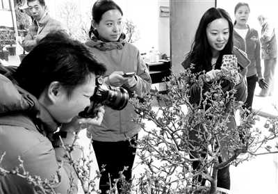 首届陶然亭海棠花文化节开幕。昨天,本报通讯员来到陶然亭公园采风,来自公交集团、北京铁路、牡丹集团等10余名通讯员,在欣赏海棠盆景的同时,拿起手机和相机进行拍摄学习交流。另外,本报将继续组织通讯员举行摄影拍摄活动,可通过ldwbtxy@126.com或劳动午报通讯员之友QQ群73026720报名。本报记者 邱勇 摄影报道