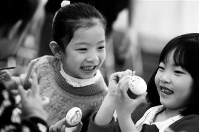 “老师,我的彩蛋画好了!”昨天,在东城区第三幼儿园教室里,小朋友们在老师的带领下在蛋壳上作画。绘彩蛋、吃彩蛋是清明节期间重要的民俗活动,象征着一年圆圆满满。在清明节来临之际,龙潭街道以“品味国学,传承经典”为主题,将国学文化、绘画和动手实践相结合,引导孩子们过一个韵味十足的清明节。本报记者 于佳 摄影报道