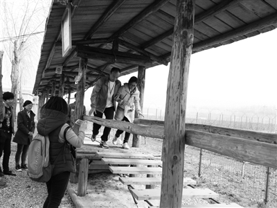 年轻职工在这个历史回顾馆里做完热身活动后,紧接着重头戏就开始了——他们在联谊活动工作人员高俊的带领下来到了体验园内的拓展区。