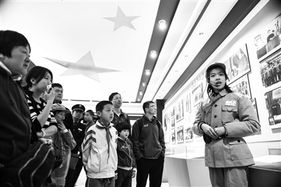 清明节期间,香山公园迎来景观美、游客量大的“游园黄金周、春季赏花季”。昨天,香山公园 “学雷锋志愿服务活动”启动,倡导游客文明游园,并组织志愿者开展志愿服务。小学生志愿者担当红领巾小导游,他们身着军服,在双清别墅提供全程义务导游讲解服务,传播红色革命历史。本报记者 邱勇 摄影报道