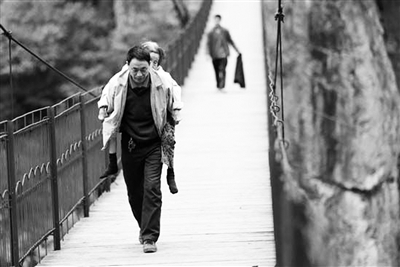 我们为他的孝心感动,更为他的不向命运屈服的信念和行动感动。他辛苦赚钱供女儿读书,背着母亲打工,每天做着又苦又累的体力活,靠帮人送水养活一个家,尽为人子的孝道,在这样的日复一日的努力中,凸显男子汉的坚强。