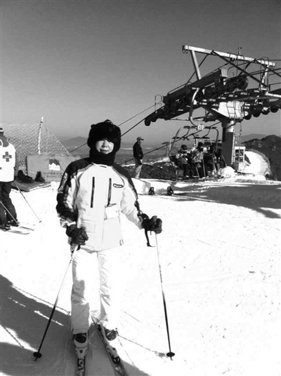 记得第一次接触滑雪运动,那是在5年前的一个冬天,我陪朋友去北京密云南山滑雪场看他们滑雪。当时根本没有要学滑雪的愿望,可是到了雪场一看,我一下就被眼前的情景迷住了:大地银装素裹,山峦连绵起伏,雪场阳光明媚,空气清新怡人,心情一下子变得开阔了许多。再一看,很多的年轻人身穿色彩绚丽的滑雪服,头戴很酷的滑雪头盔和滑雪镜,脚踏双板或单板,做着高难度动作,从高坡飞驰而下,甭提有多潇洒了,真是让我羡慕不已。这时,突然看见一位好像年龄很大的外国老太从中级道很悠然自得地滑下,上前一问人家是加拿大来的都70岁了,还滑得这样稳健,潇洒自如。心里突然产生了我也要学滑雪的愿望,“人家都70岁了还滑得这样好,我才55岁,以往会打羽毛球和乒乓球,运动素质还不错,说不定我也能学好滑雪,不妨试一试,看看我有没有这份潜力。”于是,我也租了一套漂亮的滑雪服、头盔和一套双板。穿好装备后,朋友们说我一下子年轻了许多,心里感觉美滋滋的。