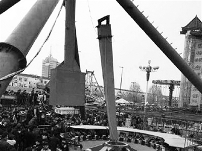 下午5点,在新乡市长垣县铜塔寺商业街庙会上,一种名为“太空飞碟”的游乐设施在空中发生故障,旋转杆断裂。事故造成19人受伤,其中1人重伤,其余为轻伤或轻微伤。该游乐设施已被关停,业主已被警方控制,事故原因正在调查。(4月7日《郑州晚报》)
