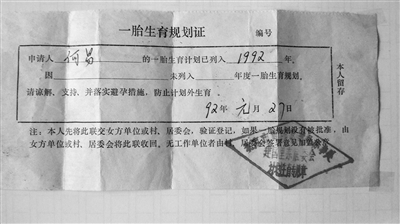 这不禁让我想起,我女儿1993年生育外孙女之前曾经先报规划再等待审批的情况。那年月,严格实行独生子女政策,每对夫妻只许生一个小孩,而且在生育前一年必须先报规划,在街道计生部门备案,等待审批。这张图片就是我女儿当年领到的,经过朝阳区建国里东居委会批准、盖有计划生育专用章的一张“规划证”, 明确标明在1992年已被列入生育规划。如果谁事先不报规划或者规划没被批准,擅自生了小孩,那就是计划外生育,要受到政策的惩罚。