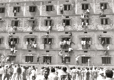 印度比哈尔邦一所考试中心出现令人咋舌一幕。许多学生家长爬上4层高楼的外墙,扒在窗边,把小抄夹在纸飞机内扔给坐在教室里参加中考的子女,公然帮他们作弊,激起印度国内对现行考试制度和学生压力的反思。