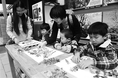 昨天,玉渊潭公园举办“玉渊识樱环保行”主题科普活动。在樱花标本制作的现场,孩子们认真聆听工作人员对制作步骤的讲解,小心翼翼的进行着每个细节的处理。在科普小屋前,有近30块“玉渊识樱”展板布满了一面外墙,墙上每一块展板都详细介绍了园内一种樱花的科普知识,倡导游人赏花更要爱花,增强环保意识,文明低碳游园。本报记者 邱勇 摄影报道