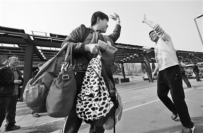 “阿伟,你们队的人呢?”“阿伟,给我拍张照片儿”……昨天,公交客三分公司工会举办职工长走竞赛,17个车队的带队工会干部全部变身“衣架超人”。工会干部“阿伟”就是其中之一,不但一人拎着十几个包,还要组织人员、用手机为参赛职工拍照。比赛场内是职工欢乐的身影,场外是忙得不亦乐乎的工会干部。本报记者 于佳 摄影报道