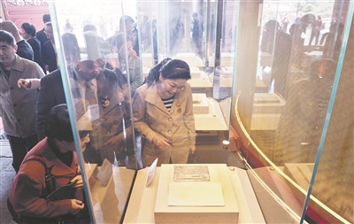 宋刻本《资治通鉴》、唐三彩陶马、陶黄釉骆驼……昨天,“知古鉴今——《资治通鉴》大型展览”在太庙艺术馆开幕,闻讯而来的市民早早赶来,观赏珍贵文物,感受传统文化。开幕式还未开始,提前进入场馆的市民就有序地观看着琳琅满目的展品,图个先睹为快。
