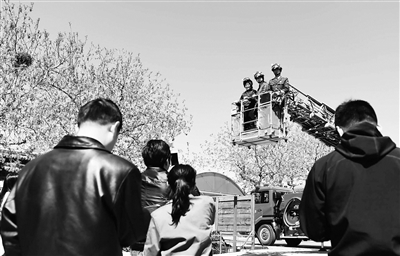 昨天,在故宫内的武警消防训练场上,来自东城区东华门地区的街道机关干部、辖区企事业单位的职工,分步骤地进行了体验消防车天梯、学习拴逃生安全绳、模拟灭火等消防安全培训项目。