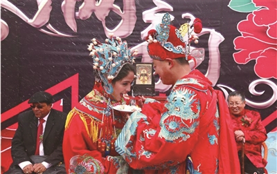 点评:或许这位洋新郎压根就没见过这排场,恰恰是如此新鲜的婚礼,会给他留下深深的记忆。
