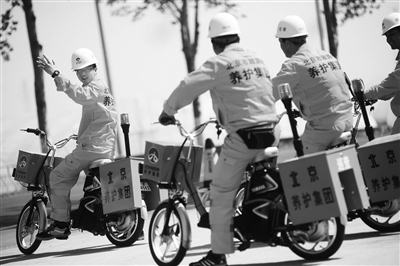 在养护集团瑞通六处,10辆崭新的自行车已经分发到巡查员手中。李雷接过电动自行车,仔细地察看着车辆。