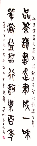 “诗词与书法是中国传统文化的精粹,把这两种不同的艺术形式紧密的结合在一起,这就是我追求的目标。”董枫说。董枫是地地道道的北京人,四合院长大的,他自幼兴趣广泛,秉性聪慧,酷爱翰墨。年轻时期拜著名书法家王逸如先生为师,对学习书法艺术打下了良好的基础。在书法创作中,以写诗词书法见长的董枫认为,在书法创作中,要古为今用,博取长处,追求古朴、厚重的风格理念,给人以雅逸的审美艺术享受。(双新)
