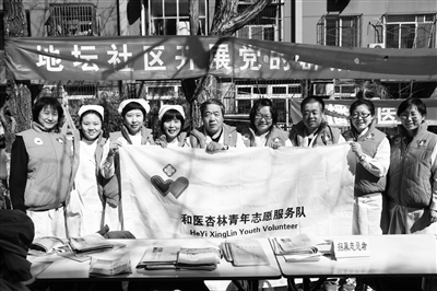 去年春天,记者曾参加过一次和医杏林青年志愿服务队的活动,其中已不属于年轻人的内科副主任医师佟飞、中医科主治女医师赵鑫等人提供的服务,更受居民欢迎。