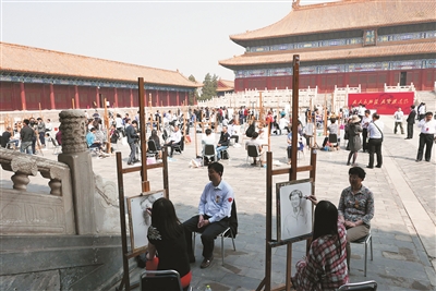 昨天上午,由北京市总工会、中央美术学院联合主办的“为人民服务·为劳模造像”大型活动在市劳动人民文化宫举行,来自中央美术学院的200余名师生、艺术家为全市100余名劳动模范代表现场造像。活动现场,艺术家们通过雕塑、国画、油画、素描和水彩等形式为劳模创作肖像。创作结束后,中央美术学院将此次创作的作品全部捐赠给了市总工会,同时授权市总工会制作复制品赠与各位劳模代表,劳动人民文化宫将于5月集中展示本次活动创作的作品。详见第4版本报记者 周世杰 摄影报道