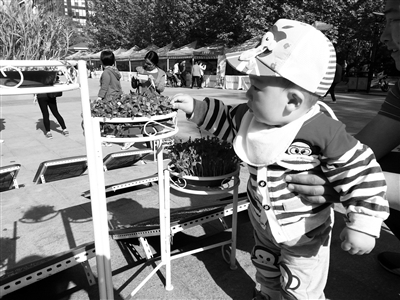 在社区奥林匹克文化广场,记者看到这边花卉大观园摊位排起了一二十人的长队,那边绿谷芽菜吸引着众人眼球卖得火热。“昨天我们很开心地领取到了北京农业局发放的一袋种子,今天我和孙女一起来学习种植,培养她的责任感和独立能力。”家住在附近的王阿姨说,“小孩子培育花草,花草生长也会启示儿童。种花种菜可以让孩子懂得,植物就像人一样,也需要培土浇灌、细心培育才能保持健康成长。”