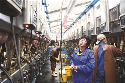 “我们养牛也讲究大数据了,现在牛的各项记录都很准确,出现问题,把数据抽出来返回到实践上,就知道原因是什么。我们的职工非常敬业、朴实。我们也建立了奖励制度,把工作与个人利益挂钩,大家就更有干劲了。”